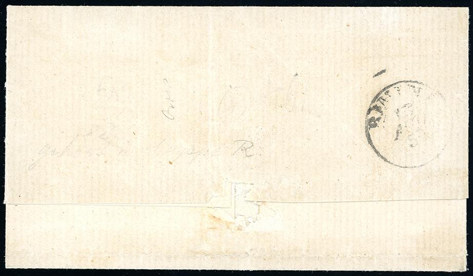 1859 - 6 baj grigio verdastro (7), frazionato diagonalmente, su sovracoperta di lettera da Forlì 12/8/1859 a Rimini. Raro. Cert. E.Diena. ... Leggi tutto