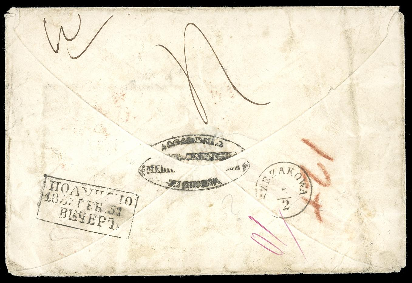 1853 - Lettera pagata in contanti da Genova 22/1/1853 a San Pietroburgo, in Russia, diversi segni di tassazione al verso. Interessante e non comune durante il periodo della prima emissione.