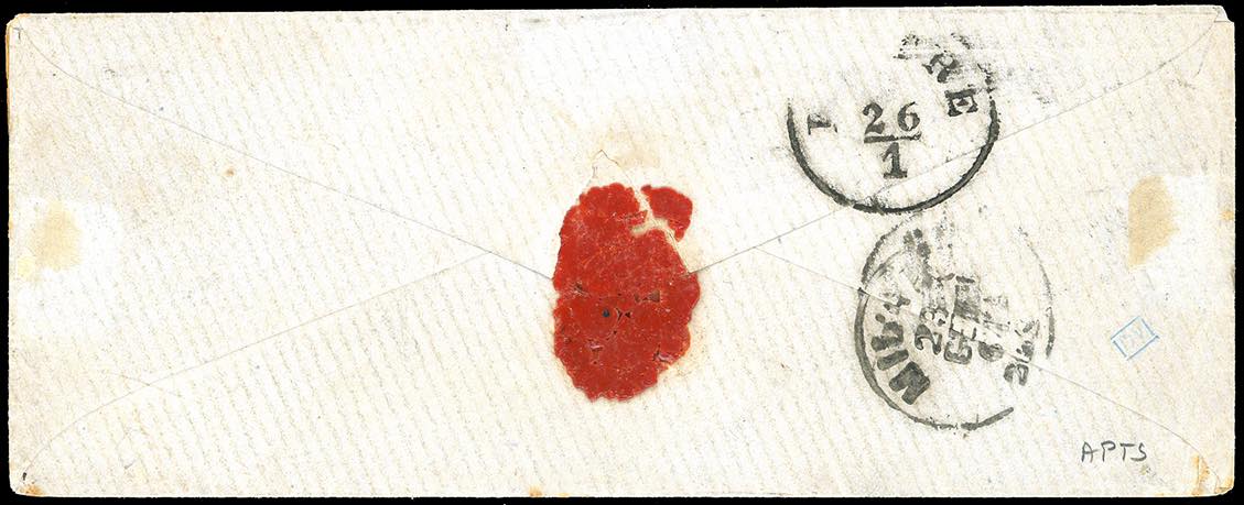1861 - 20 cent. azzurro scurissimo (15C), perfetto, su busta dall'Ufficio della Posta Militare Sarda n. 3 20/1/1861 a Feltre, tassata 10 ... Leggi tutto