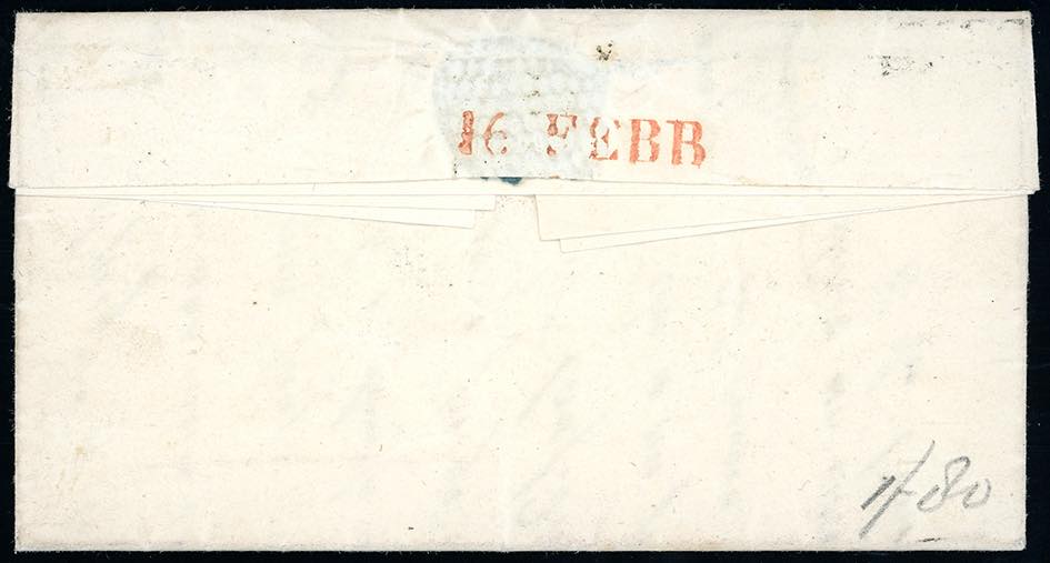PIEMONTE-ROCCAVIONE a penna, doppio cerchio D, punti R1 - 20 cent. azzurro, I tiratura (2a), due ampi margini, due a filo, perfetto e molto fresco, su lettera del 15/2/1851 a Torino, bollo d'arrivo. Bellissima e molto rara. Cert. Ferrario.