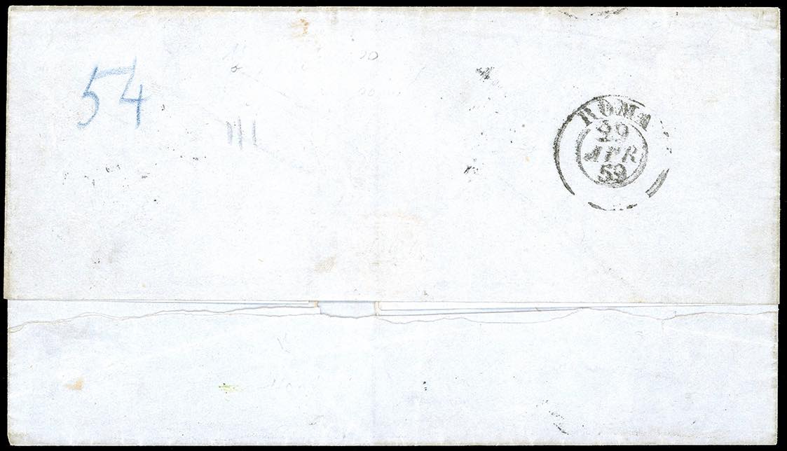 1859 - 6 crazie azzurro, II emissione (15), perfetto e ben marginato, su fresca lettera da Livorno 26/4/1859 a Roma, lineare su due righe ... Leggi tutto