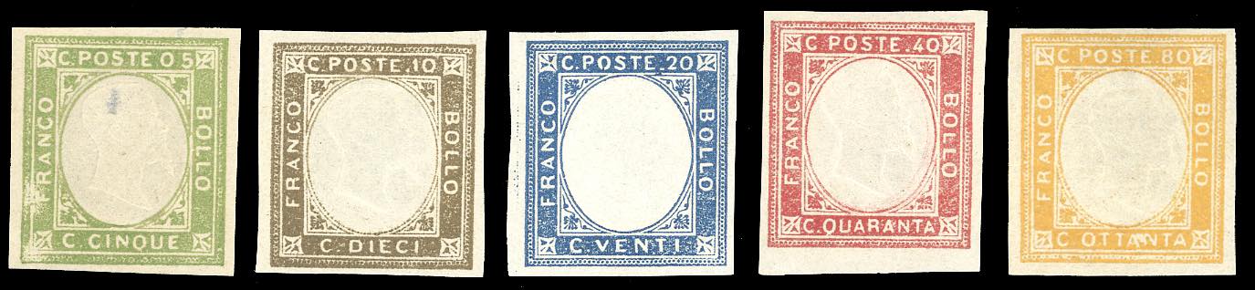 1861 - Non emessi, serie completa (1/5), nuovi, gomma originale integra, perfetti e molto freschi, 80 cent. Ferrario.