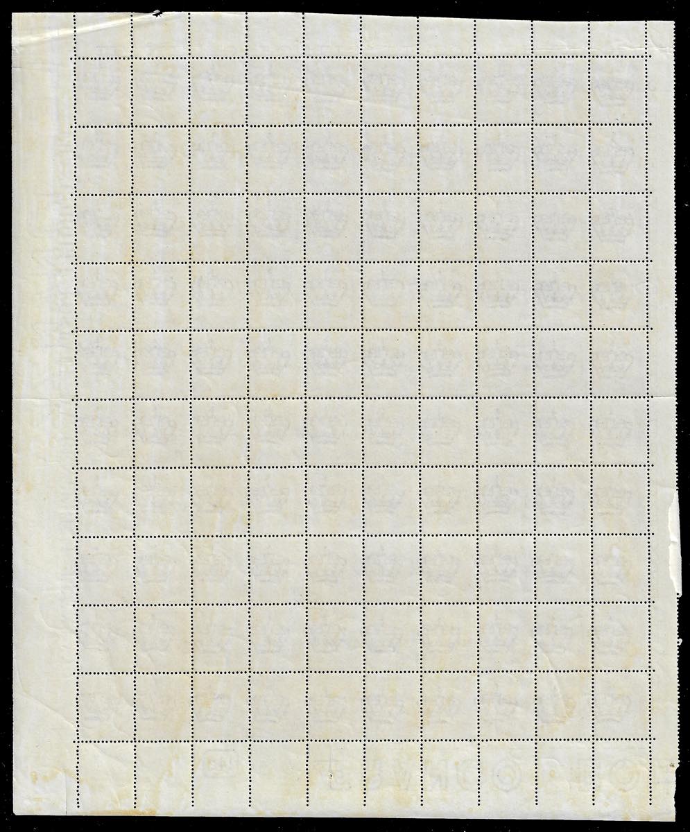 1866 - 30 cent. De La Rue, tiratura di Torino (T19), foglio completo di 100 esemplari, numero di tavola in rettangolo, buona/ottima centratura, nuovo, gomma originale integra, perfetto e molto fresco. Ferrario (cat.Sassone € 4.500/8.000).