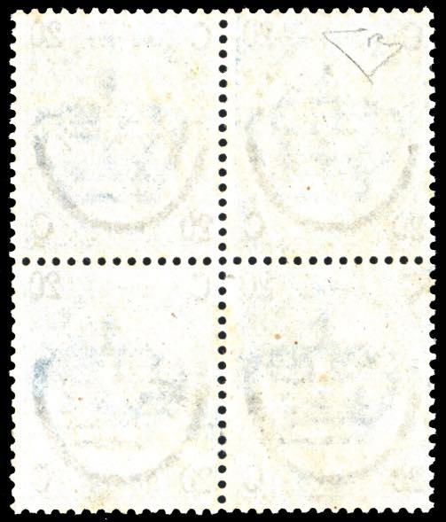 1865 - 20 cent. su 15 cent. Ferro di cavallo, I tipo (23), discreta centratura, blocco di quattro, angolo di foglio, gomma originale integra, perfetto. Raro. Cert. E.Diena.