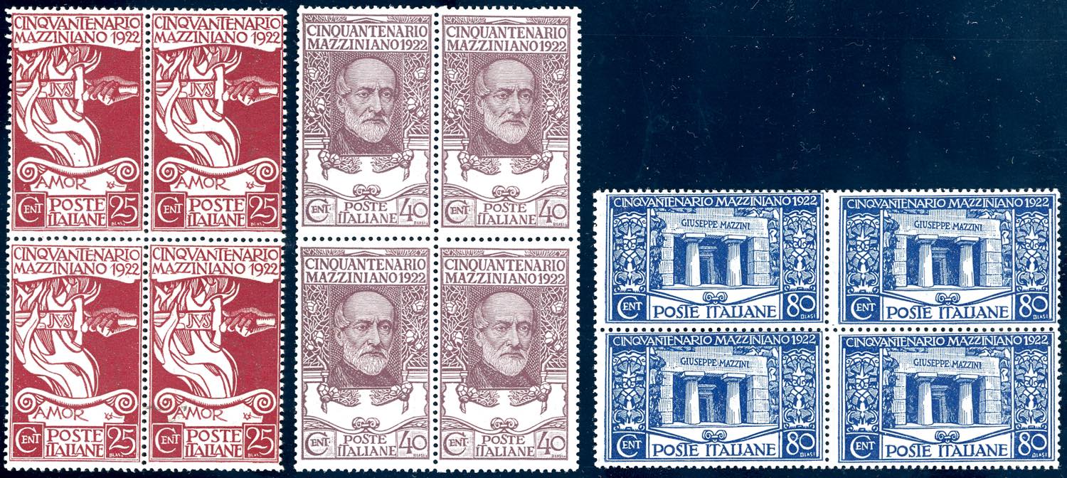 Lotto 942 - 1922 - Mazzini, serie completa (128/130), blocchi di 4, ...