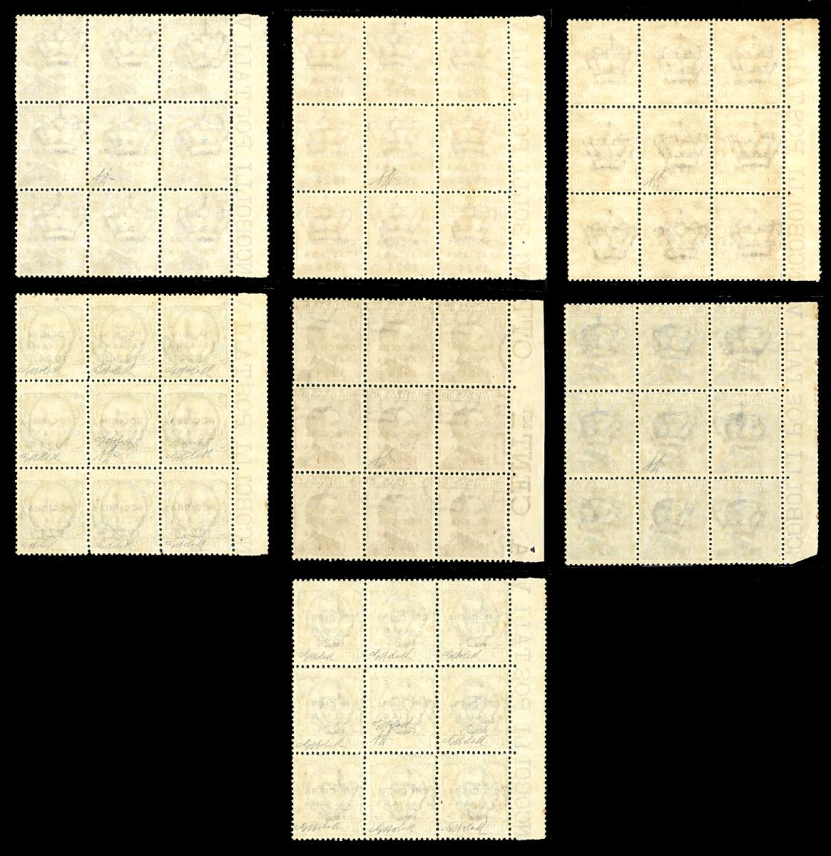 1924 - Crociera Italiana, serie completa, blocchi di nove con al centro l'esemplare con varietà "delta" al posto della "A", posiz. 32 ... Leggi tutto