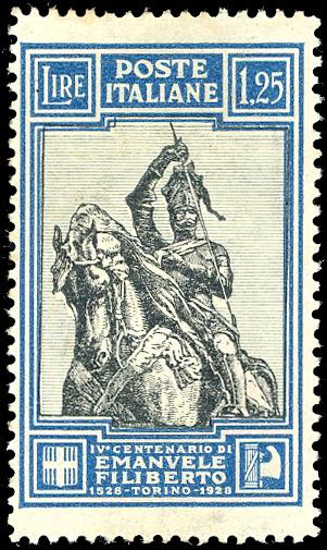 1928 - 1,25 lire Emanuele Filberto, dent. 13 3/4 lineare (235/I), gomma originale integra, perfetto e ben centrato. Cert. Diena.