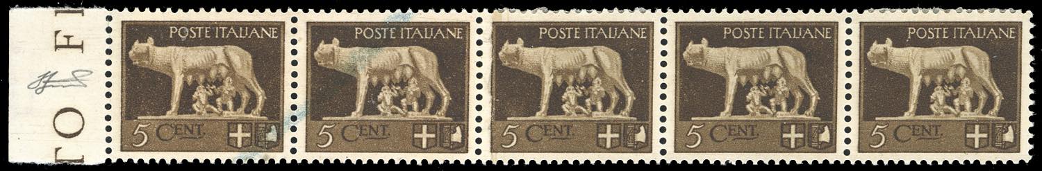 Lotto 1016 - 1929 - 5 cent. Imperiale, striscia orizzontale di 5, i ...