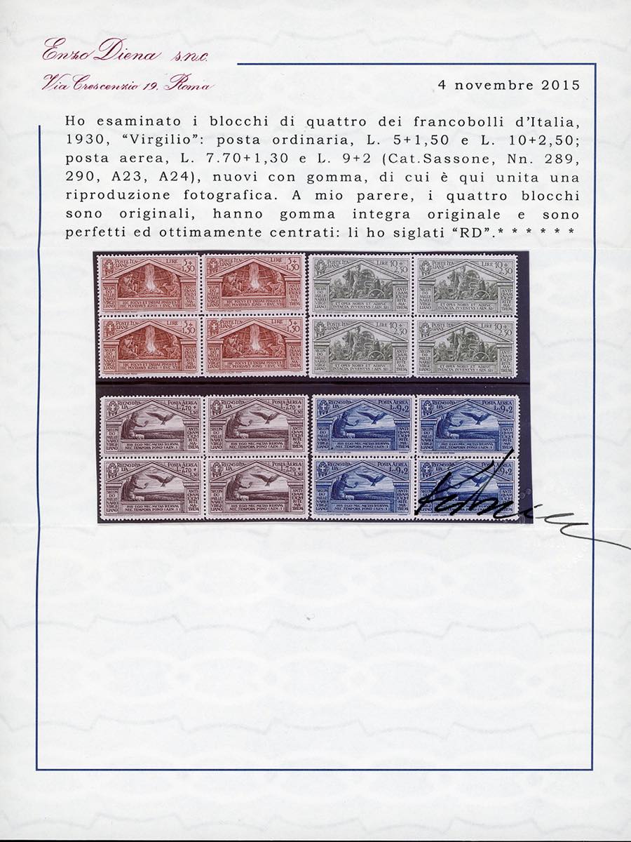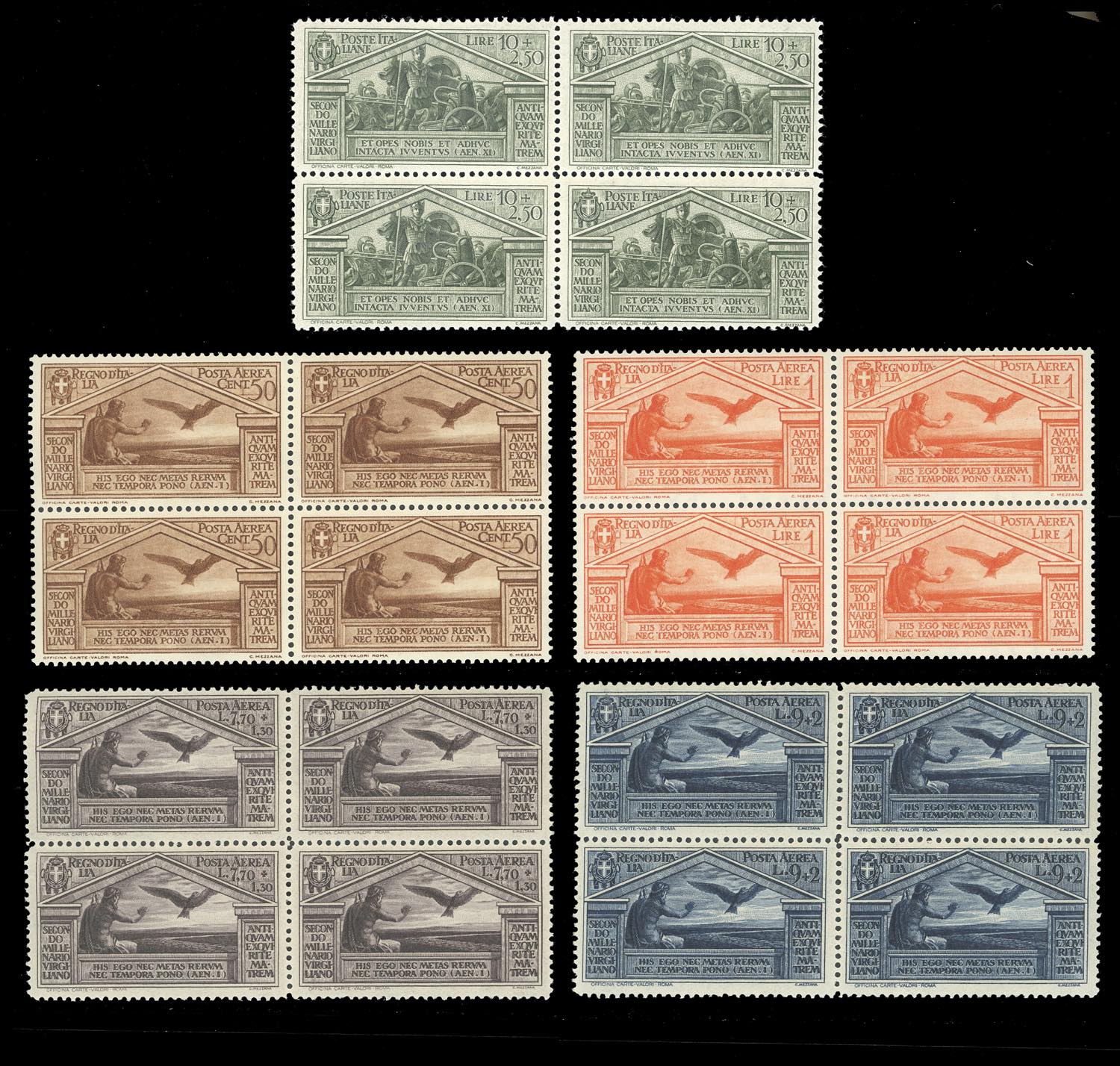 Lotto 1021 - 1930 - Virgilio, serie completa (282/290+A), blocchi di ...