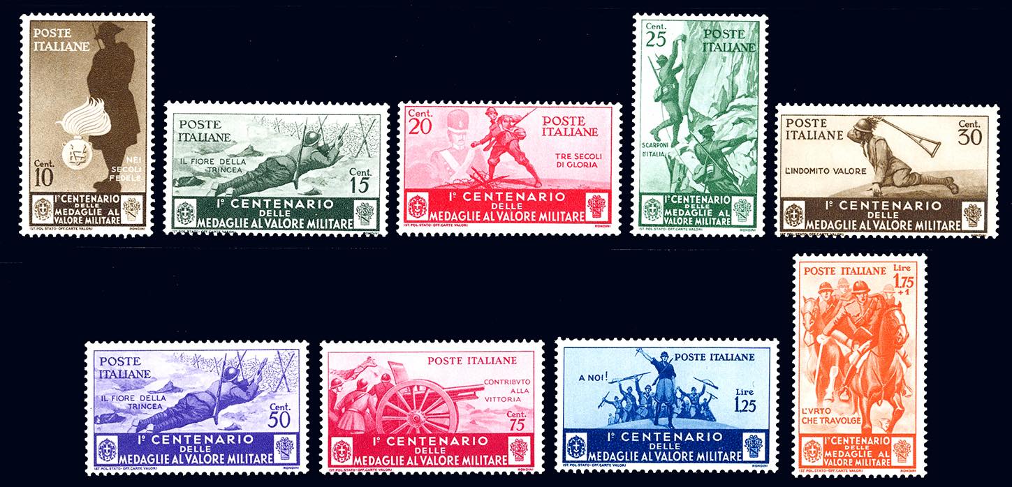 Lotto 1032 - 1934 - Medaglie al Valore, serie completa (366/376+A), ...