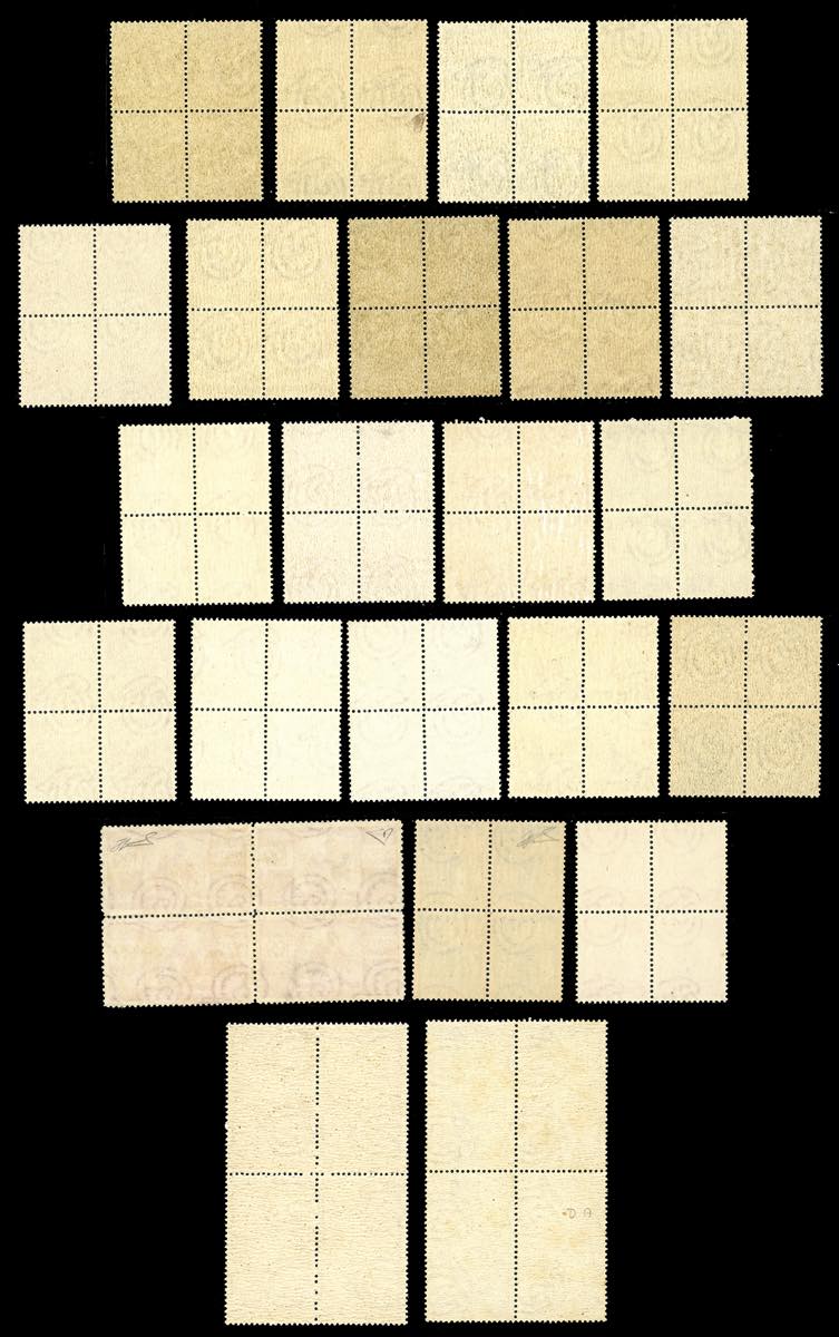 1945/48 - Democratica, serie completa (543/565), serie completa in blocchi di quattro, nuovi, gomma originale integra, perfetti. Molto freschi e ben centrati. Il 30 lire cert. Ferrario, il 100 lire cert. Enzo Diena.