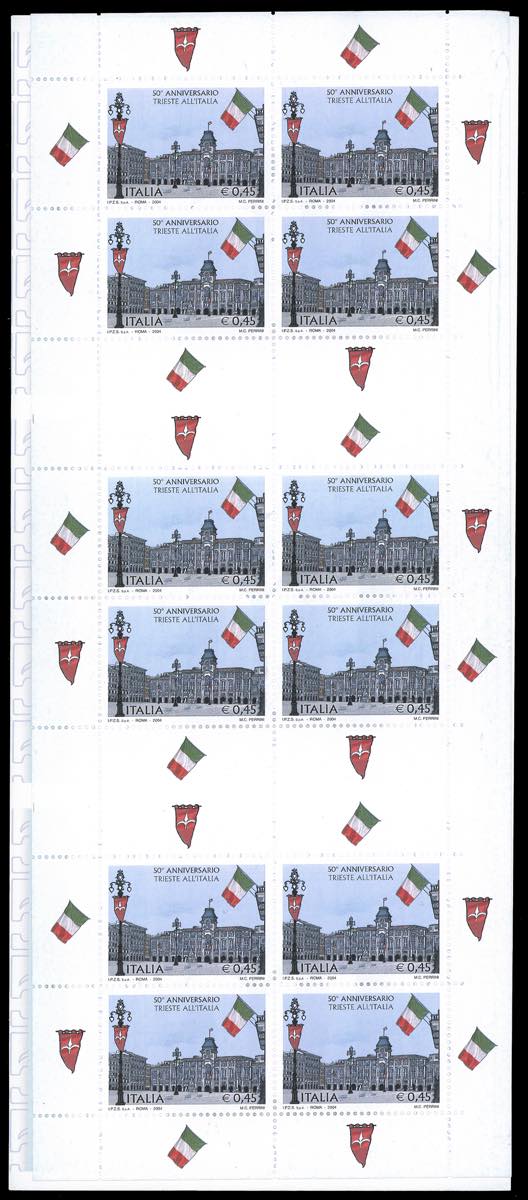2004 - Libretto Trieste all'Italia (26), tre esemplari con le copertine ancora unite e non tagliate, completi di francobolli, nuovi, gomma ... Leggi tutto