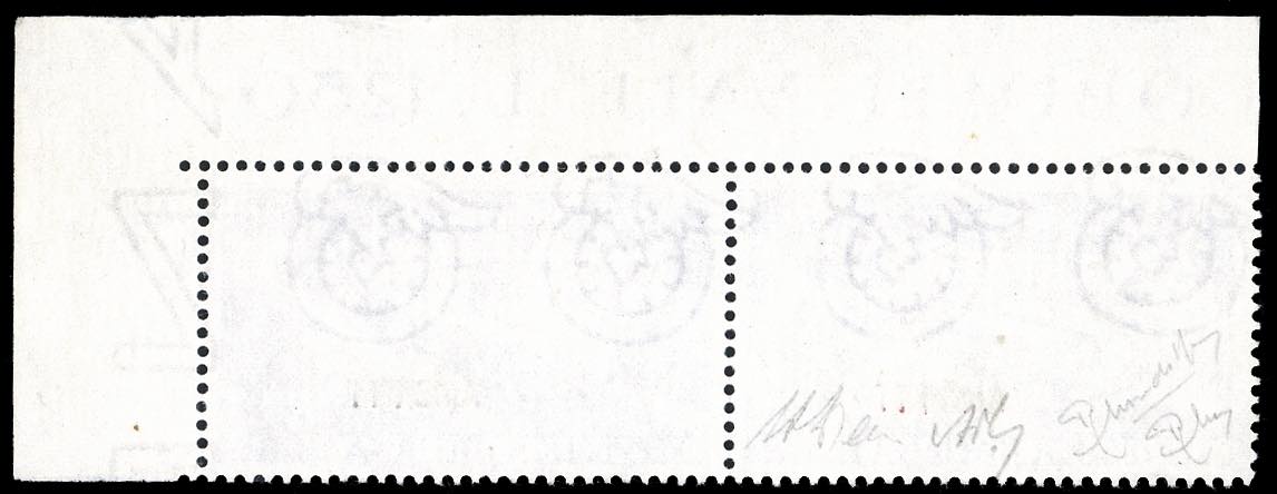1953 - 25 lire Mille Miglia, doppia soprastampa, nera + azzurra, in coppia con il normale (165c), angolo di foglio, nuovo, gomma originale ... Leggi tutto