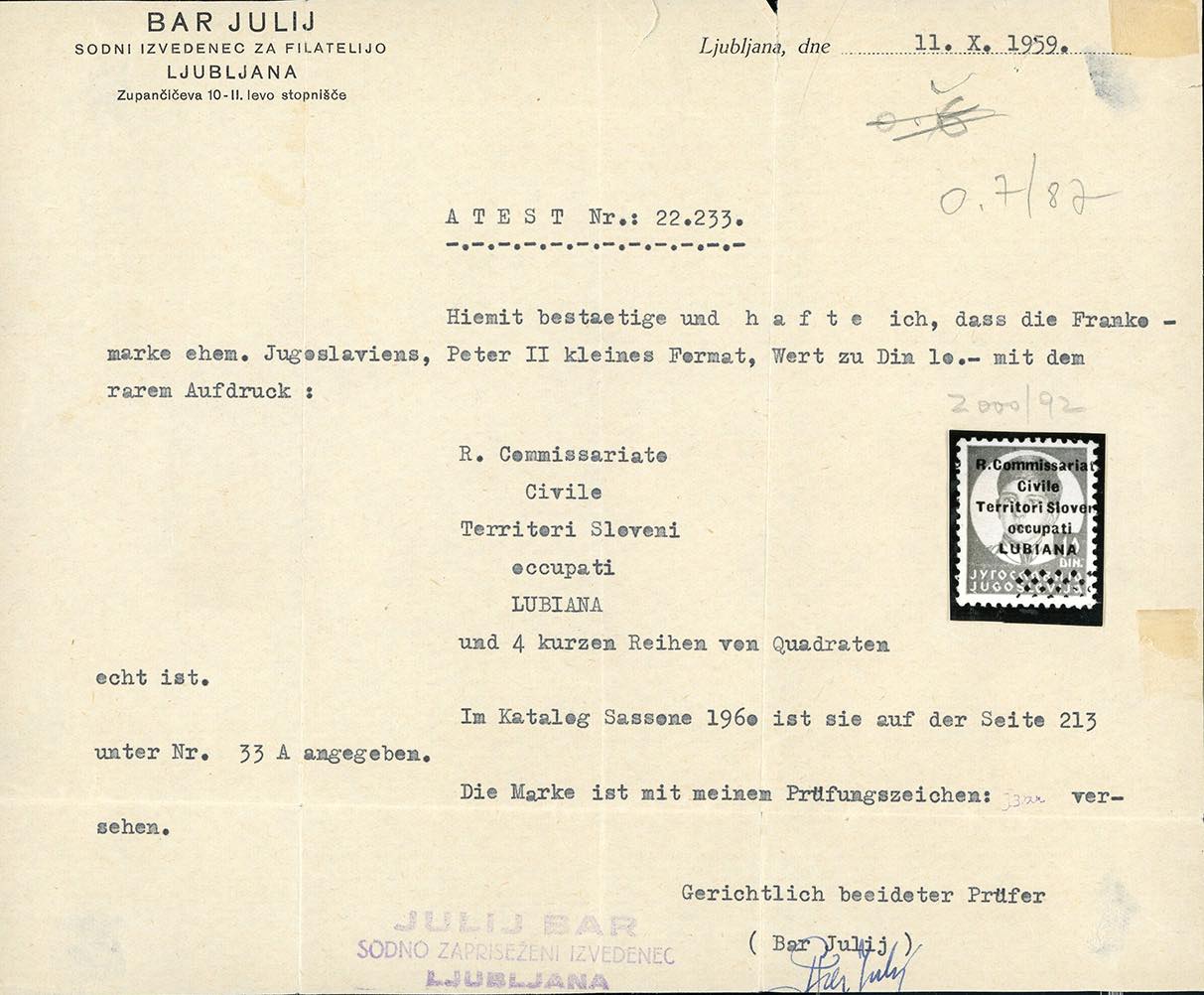 Lotto 1747 - LUBIANA 1941 - 10 d. soprastampato "R.Commissariato", ...