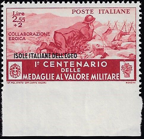 1934 - 2,55 + 2 lire Medaglie, non dentellato in basso (89a), bordo di foglio, gomma integra, perfetto. Raro. Cert. Avi.