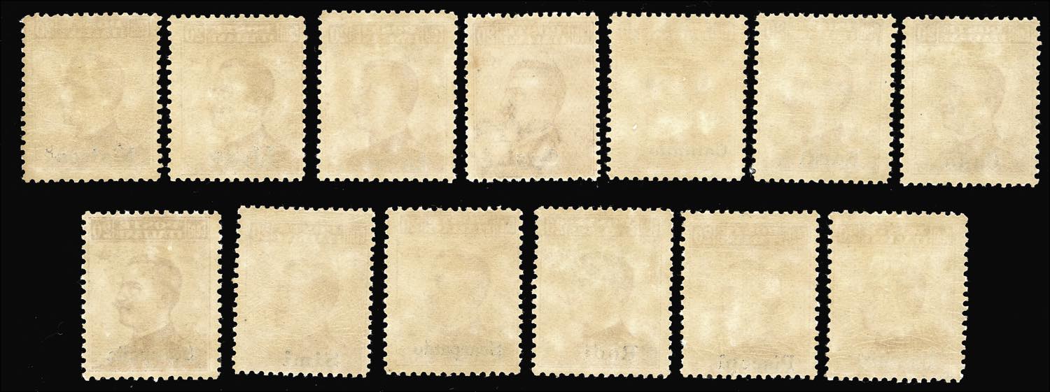 GIRO ISOLE 1917 - 20 cent. arancio Michetti, senza filigrana soprastampato (n.9 per tutte le isole, n. 10 per Rodi), serie completa delle 13 Isole, nuovi, gomma originale integra, perfetti.