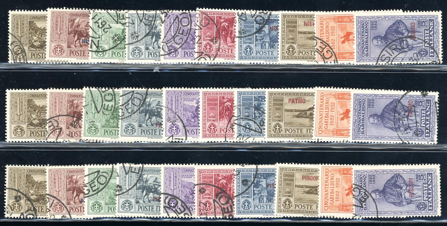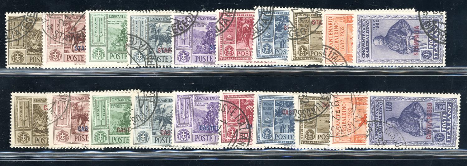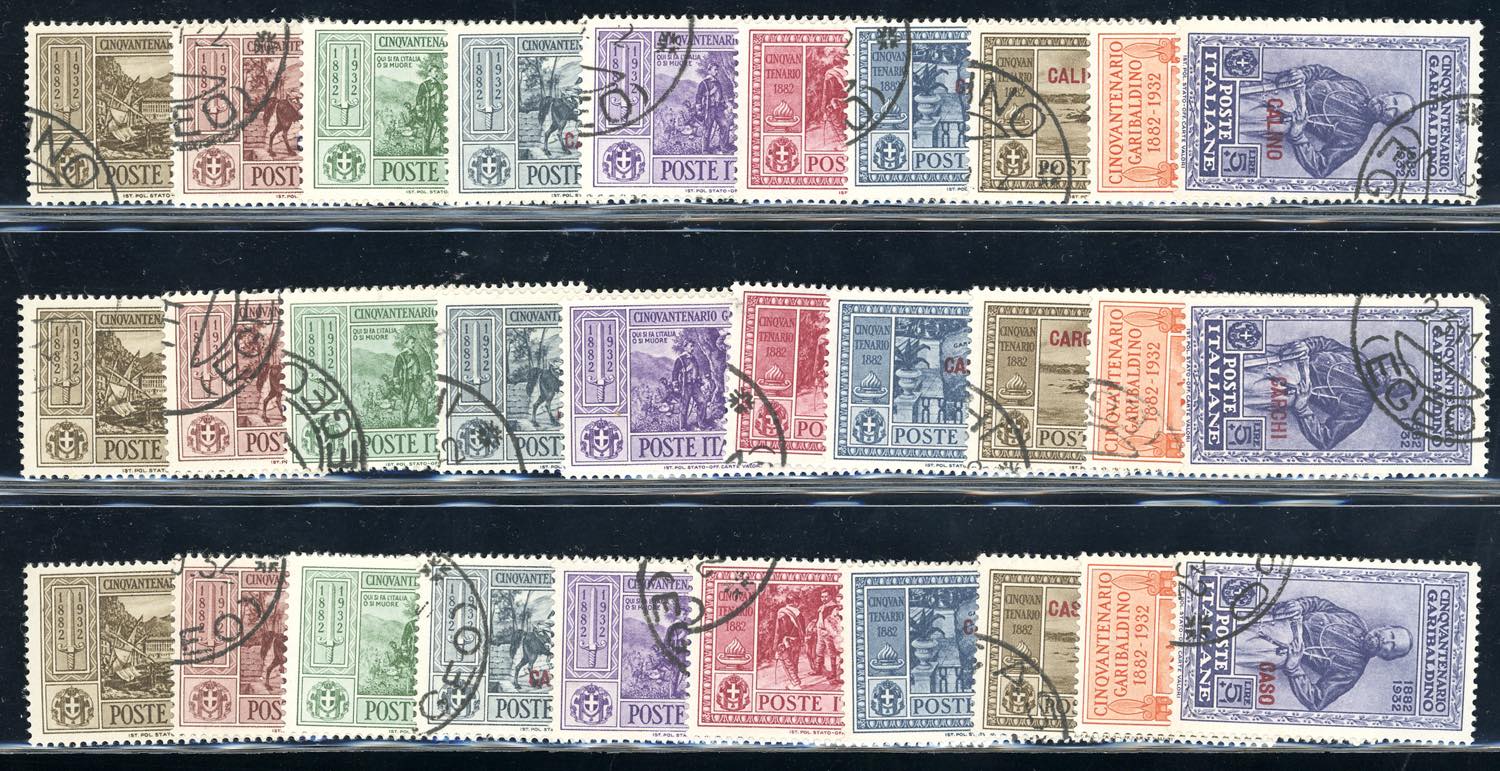 GIRI ISOLE 1932 - Garibaldi, serie completa (17/26), giro completo delle 13 isole e Castelrosso, usati con annulli originali, perfetti.