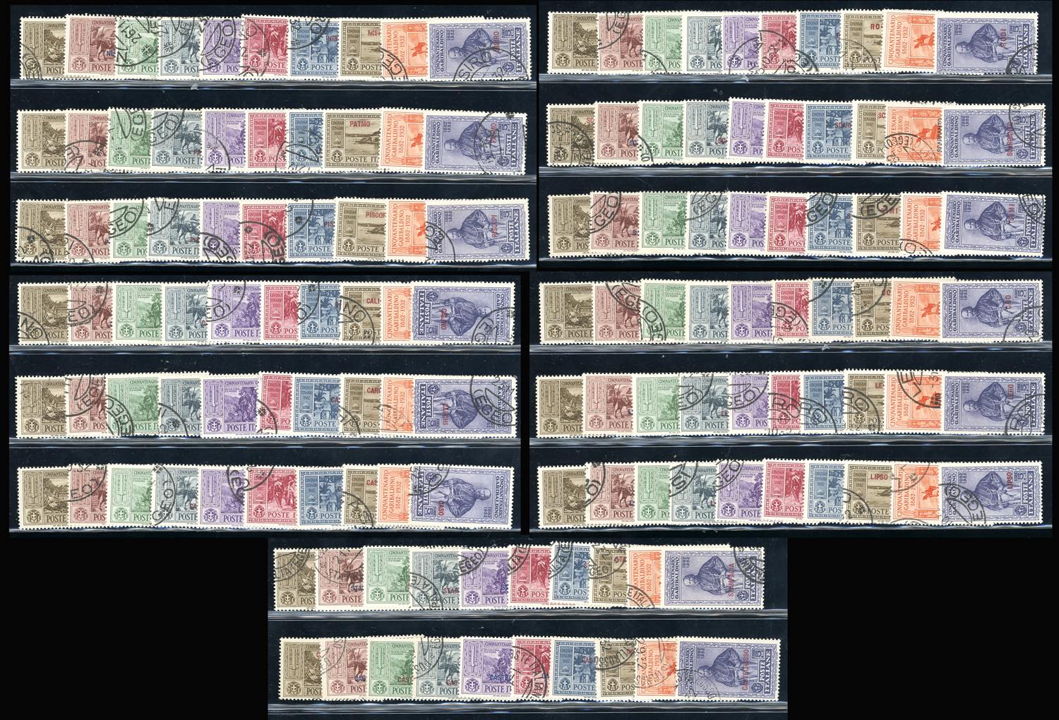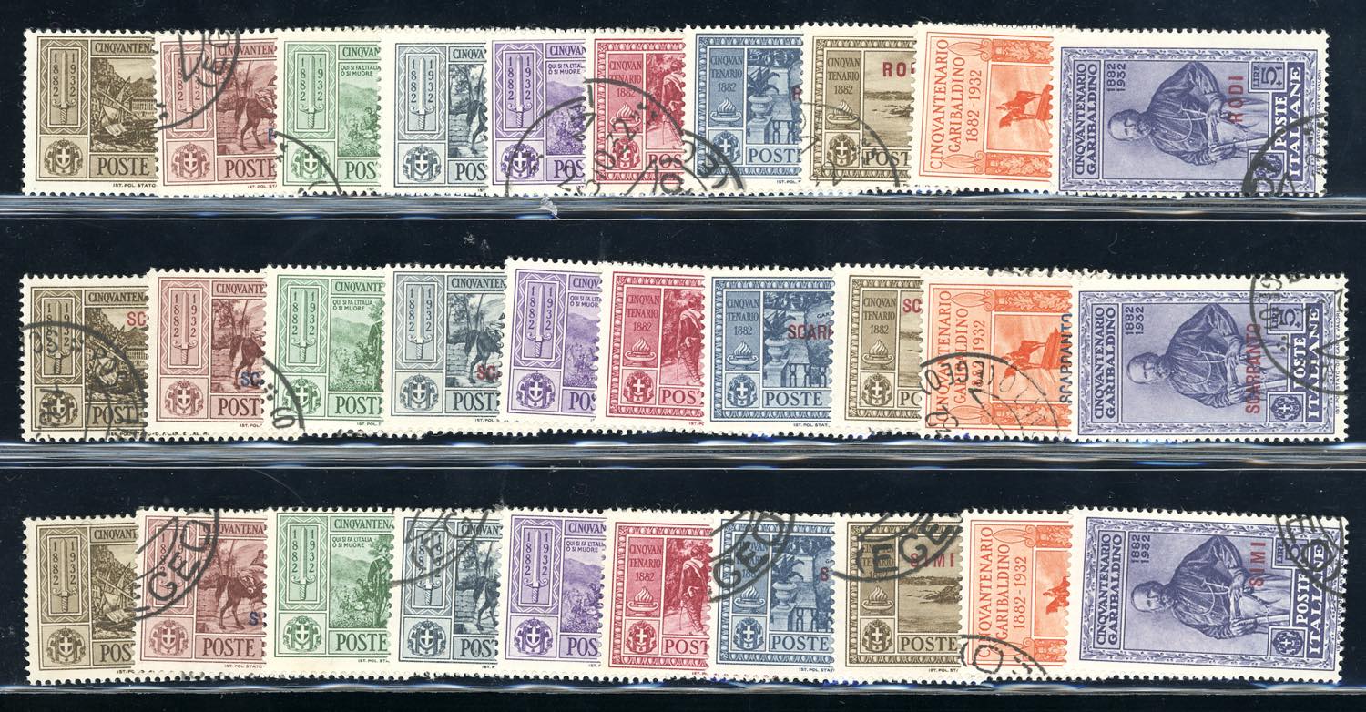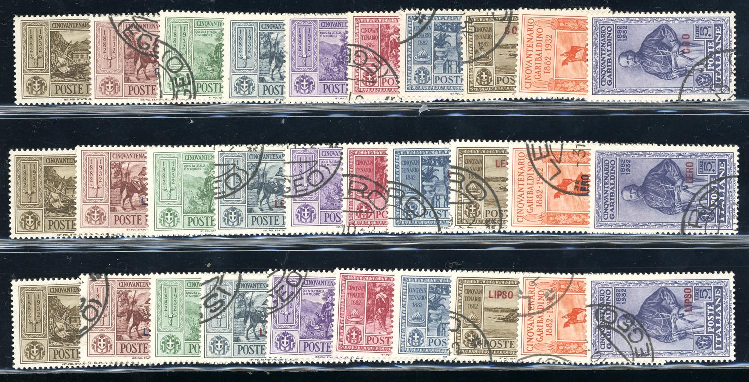 GIRI ISOLE 1932 - Garibaldi, serie completa (17/26), giro completo delle 13 isole e Castelrosso, usati con annulli originali, perfetti.
