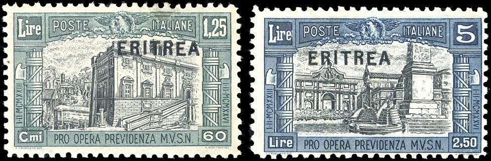 1927 - Milizia, errore di colore, non emessi, serie completa (118A/119A), nuovi, gomma originale integra, perfetti e molto freschi. Ottima ... Leggi tutto