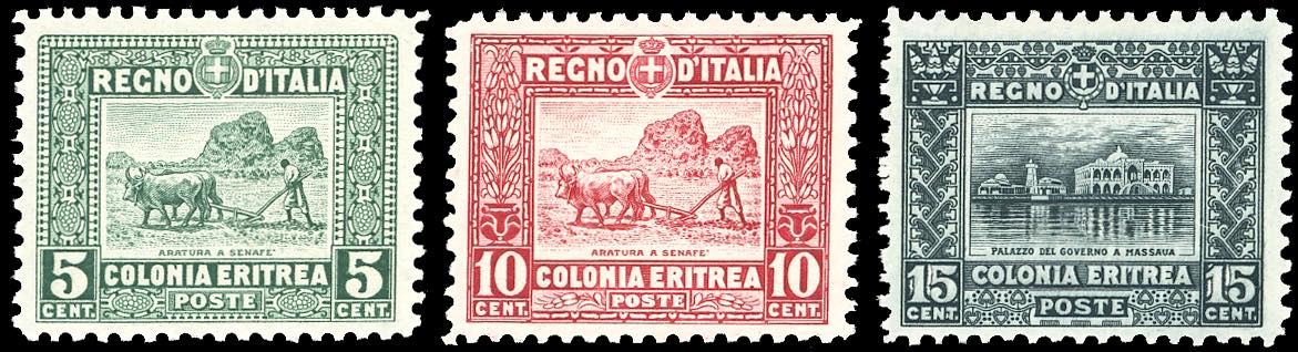 1928/29 - Soggetti africani, dent. 11, serie completa (129/131), ben centrati, nuovi, gomma originale integra, perfetti e molto freschi. Cert. Ferrario.