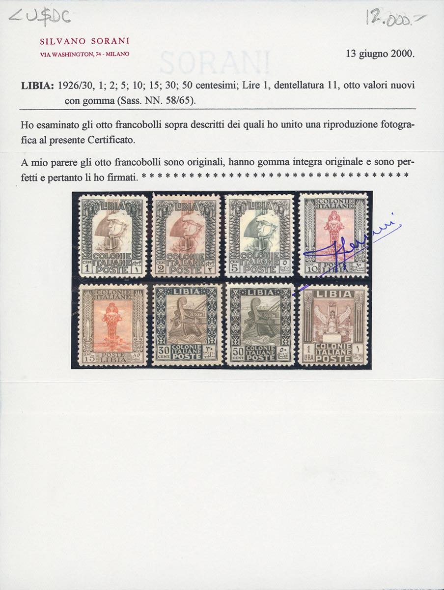 1926/30 - Pittorica senza filigrana, dent. 11, serie completa (58/65), nuovi, gomma originale integra, perfetti. Splendidi e ben centrati. Rari di questa qualità. Cert. Sorani.