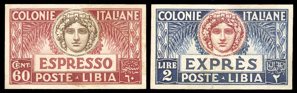 ESPRESSI 1923 - 60 cent. e 2 lire, Italia Turrita, prove d'archivio, non dentellate e non gommate come sempre (P7/P8), perfette. Belle e rare. Ferrario.