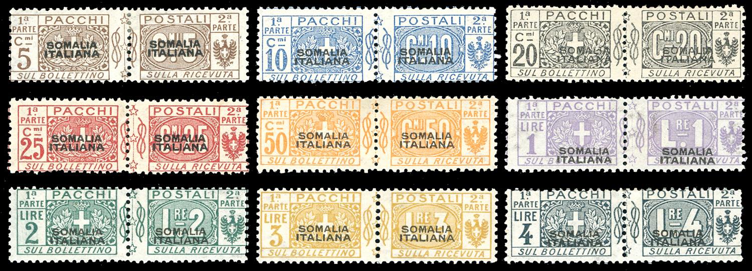 PACCHI POSTALI 1917/19 - Nodo di Savoia soprastampati, I tipo, serie completa (1/9), gomma originale, leggera traccia di linguella, ... Leggi tutto