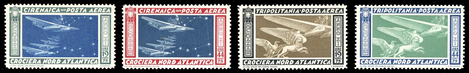 POSTA AEREA 1933 - Crociera Nord Atlantica, le emissioni di Cirenaica e Tripolitania (4), nuovi, gomma originale integra, perfetti.