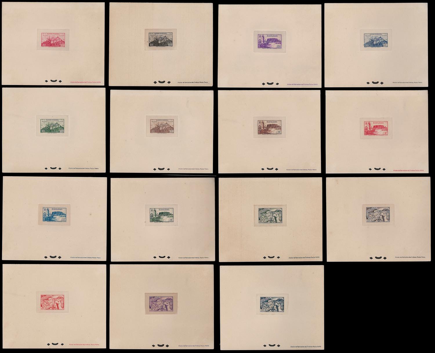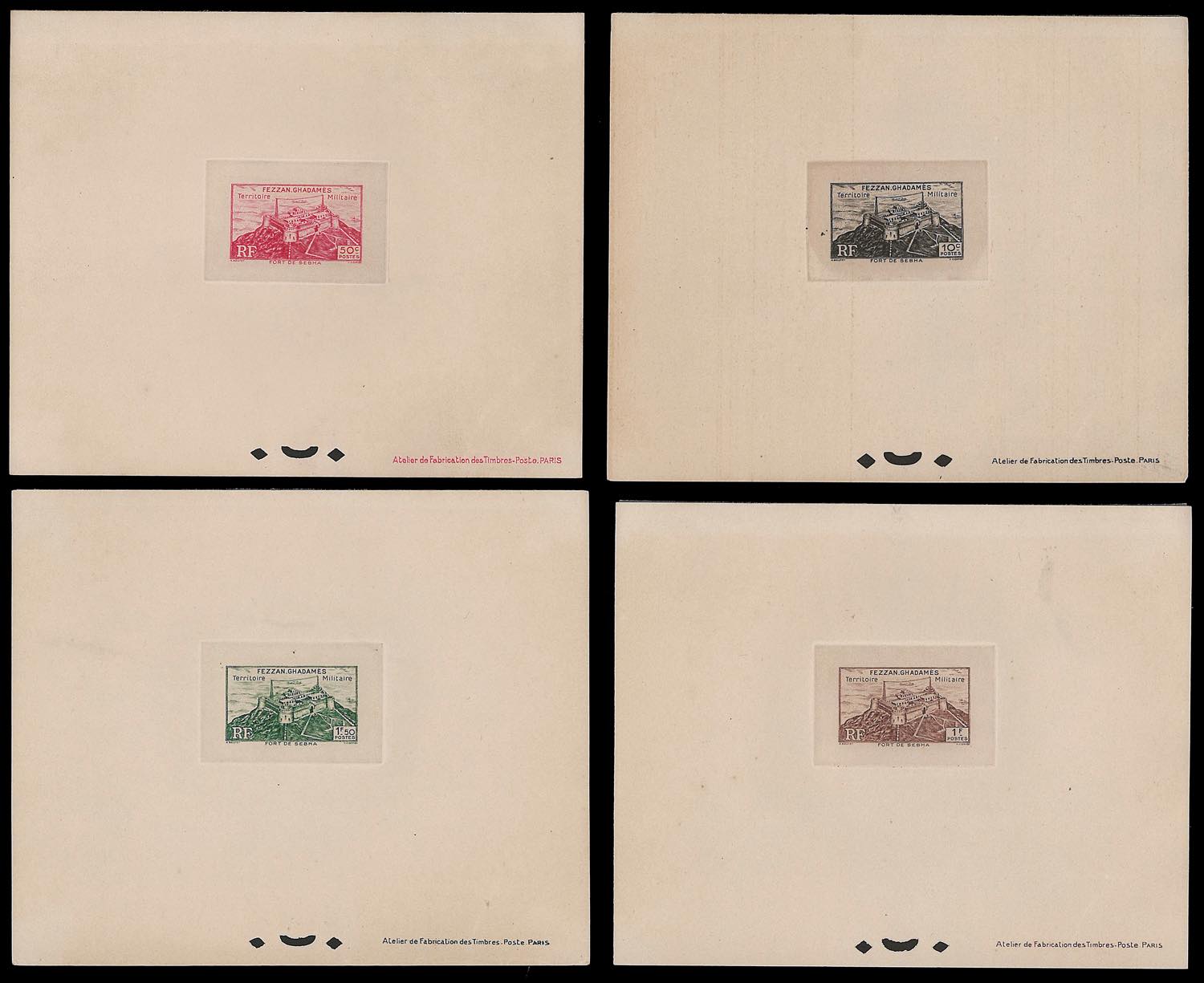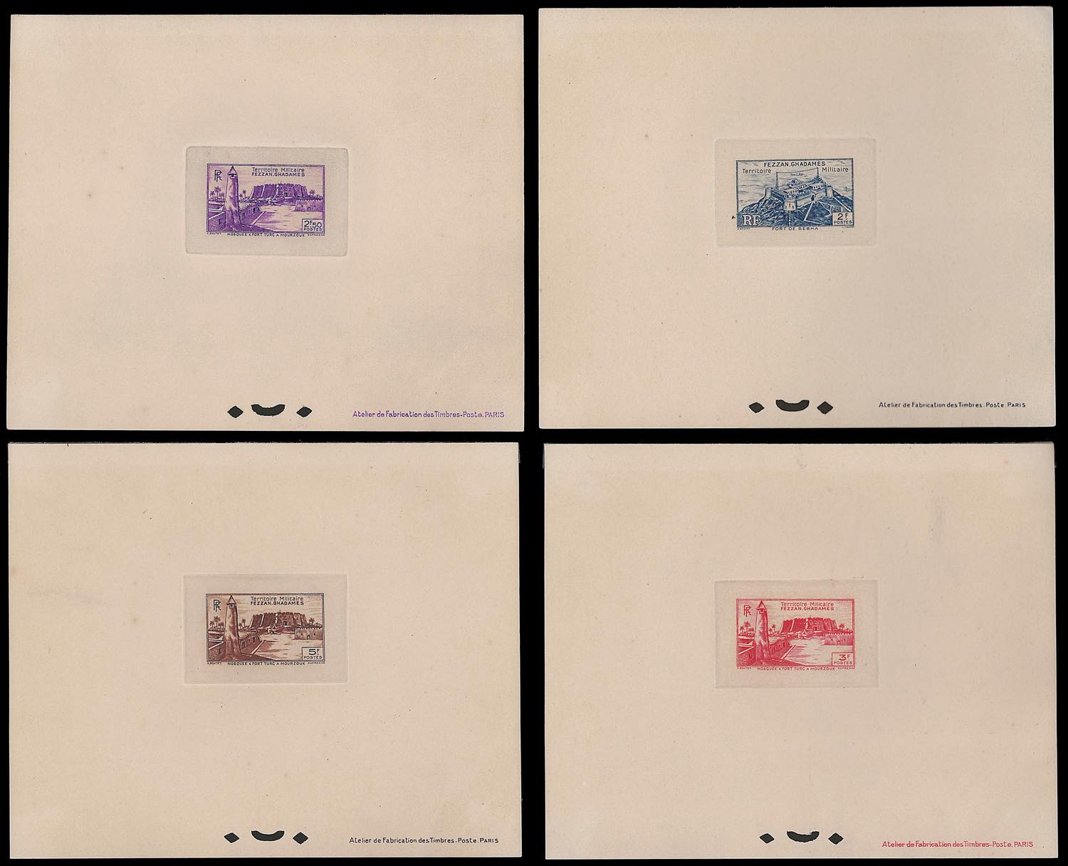 TERRITORIO MILITARE FEZZAN E GHADAMES 1946 - Prima emissione, prove di lusso nei colori adottati, serie completa (1/15) perfette. Pregevole insieme.