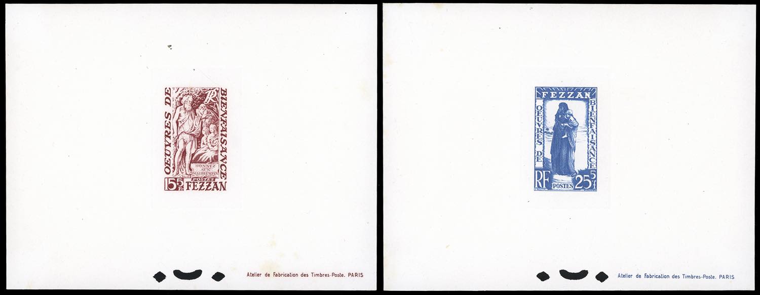 TERRITORIO MILITARE FEZZAN 1950 - Beneficenza, serie completa (27/28), prove di lusso, nei colori adottati, perfette. Rare.