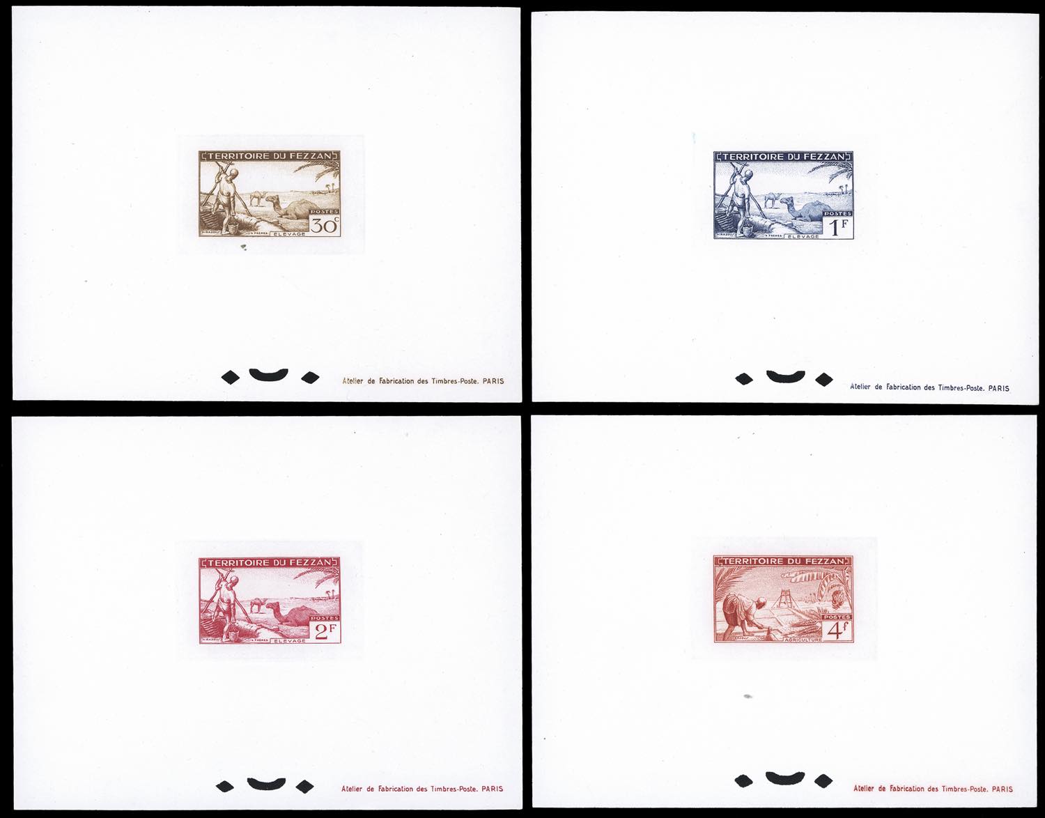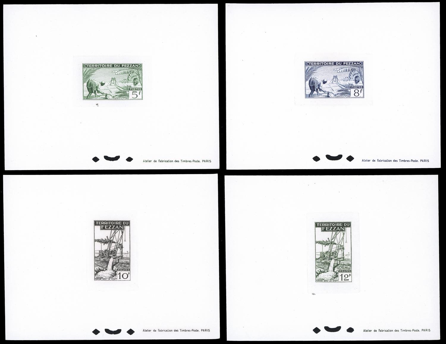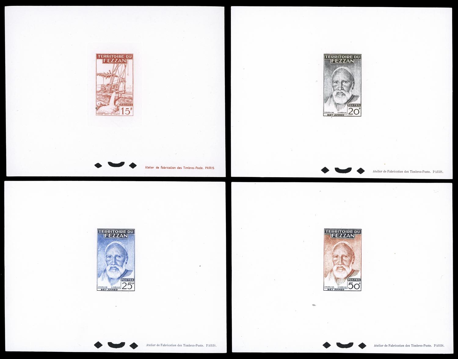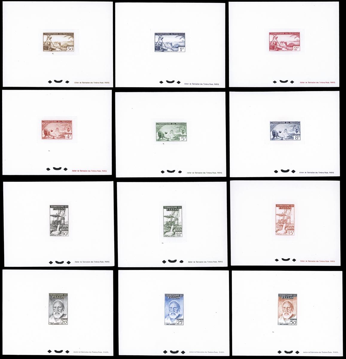 TERRITORIO MILITARE FEZZAN 1951 - Seconda emissione, serie completa (29/40), prove di lusso, nei colori adottati, perfette. Rare.