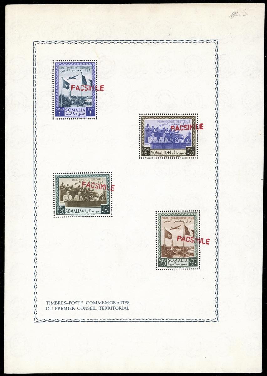 SOMALIA A.F.I.S. FOGLIETTI 1951 - Consiglio territoriale, foglietto soprastampato "FACSIMILE" (1,nota), gomma originale integra, perfetto. Raro. Ferrario.