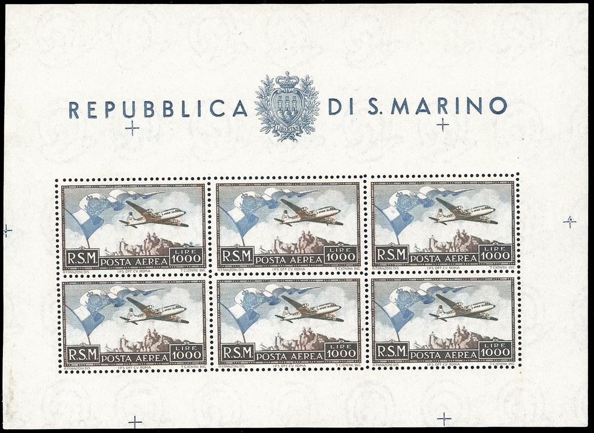 1951 - 1.000 lire Bandierone, foglietto (F13), nuovo, gomma originale integra, perfetto. Raro. Cert. Diena.