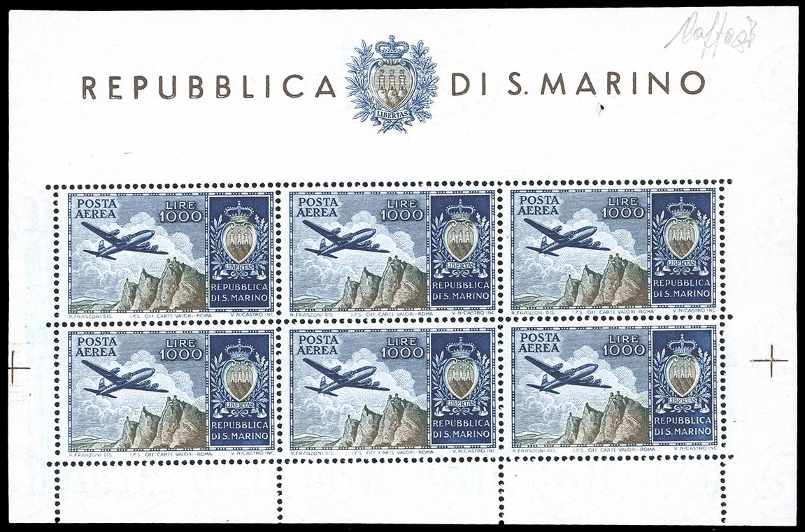 Lotto 2217 - 1954 - 1.000 lire Aereo, foglietto (16), nuovo, gomma ...