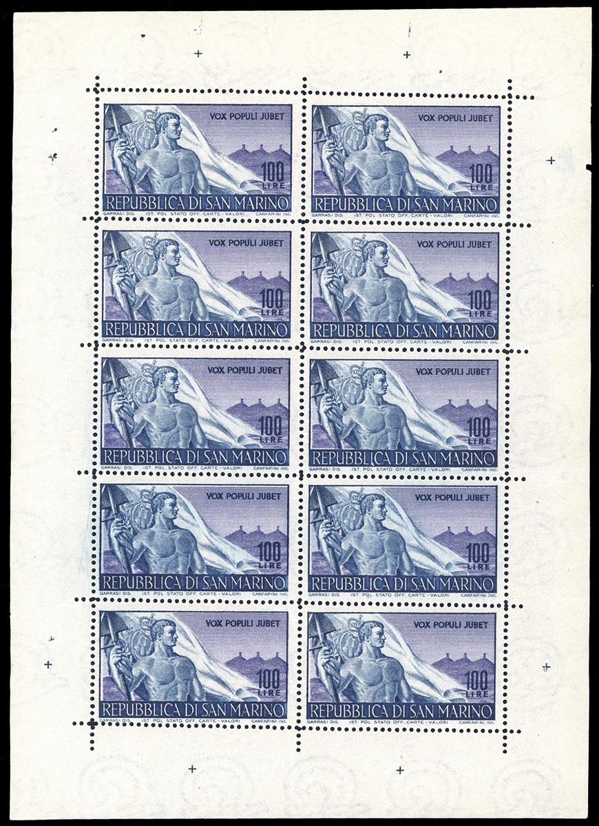 Lotto 2231 - 1948 - 100 lire Lavoratori, minifoglio (9), perfetto e non ...