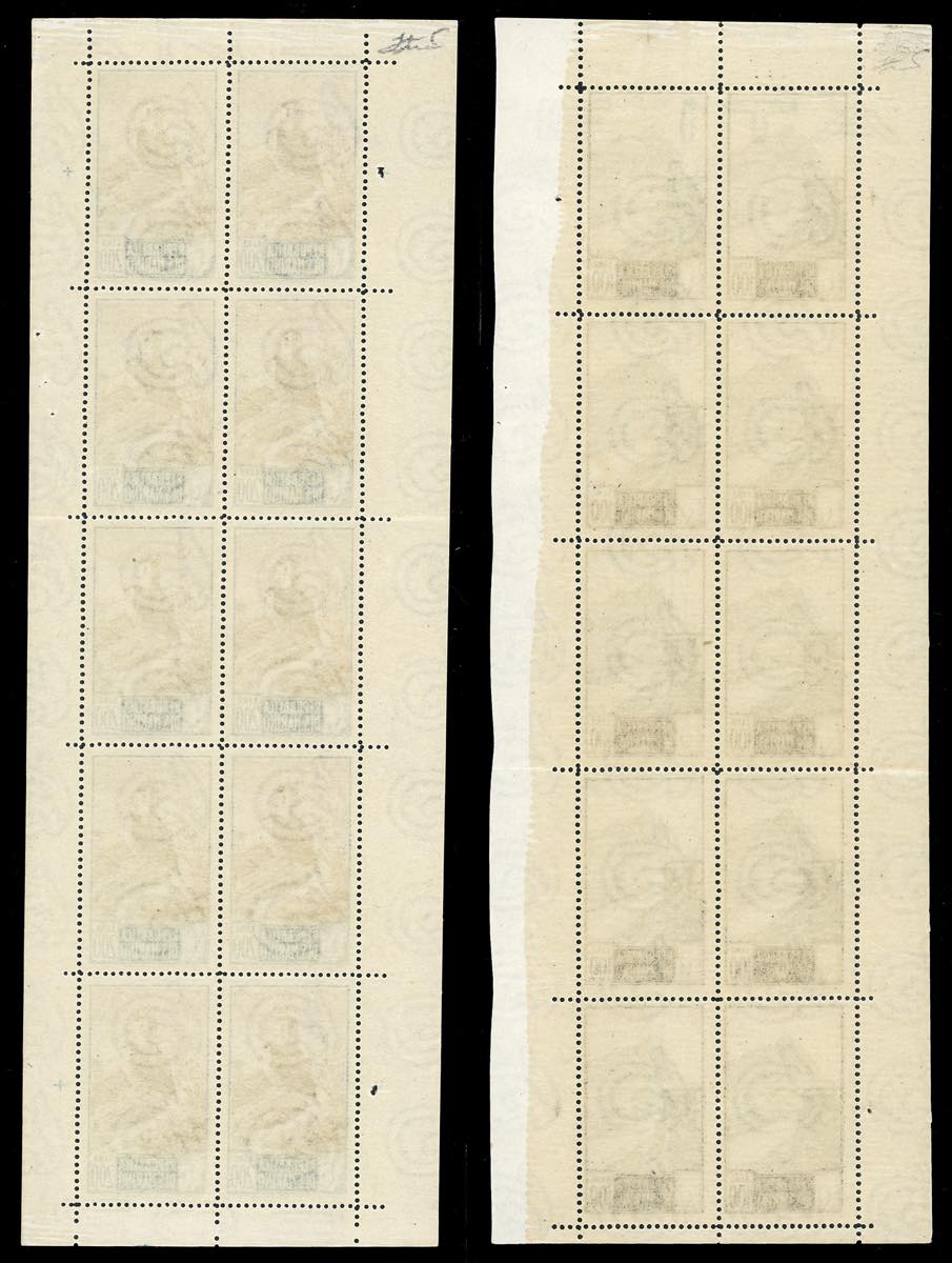 1949 - 100 e 200 lire Paesaggi, minifogli di 10 esemplari (10/11), nuovi, gomma originale integra, perfetti, lieve piega orizzontale in corrispondenza della dentellatura nella parte centrale dei foglietti, molto freschi. Molto rari e di ottima qualità. Cert. Ferrario.