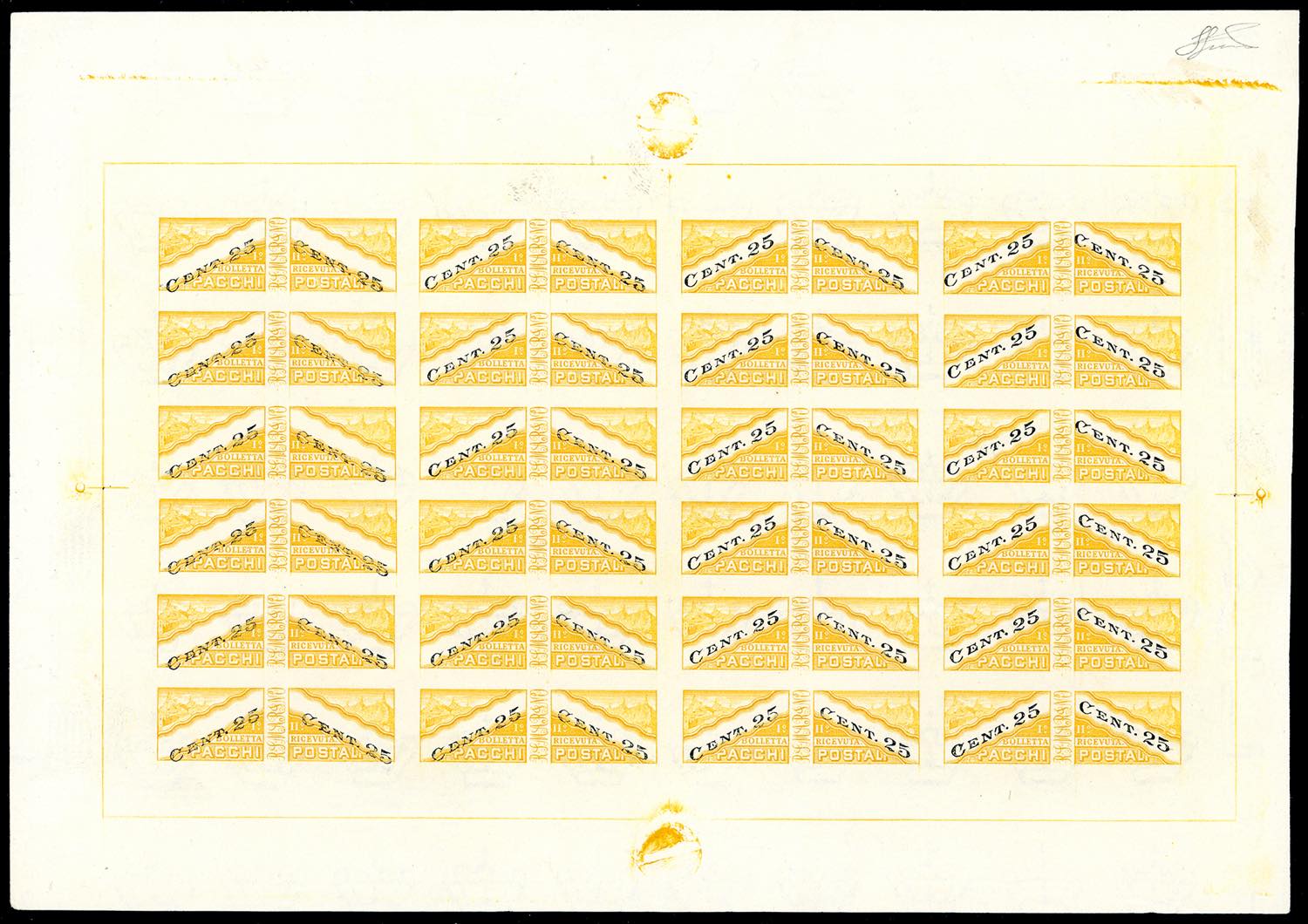 1946 - 25 cent., carta bianca, filigrana corona dritta, foglio completo di ventiquattro esemplari, non dentellati, i primi dodici con ... Leggi tutto