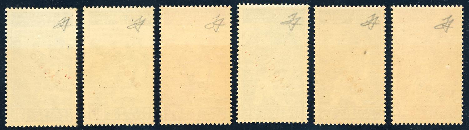 1935 - Giuridico, serie completa con soprastampa SAGGIO in diagonale (41/46), gomma originale integra, perfetti. Splendidi e rarissimi. ... Leggi tutto