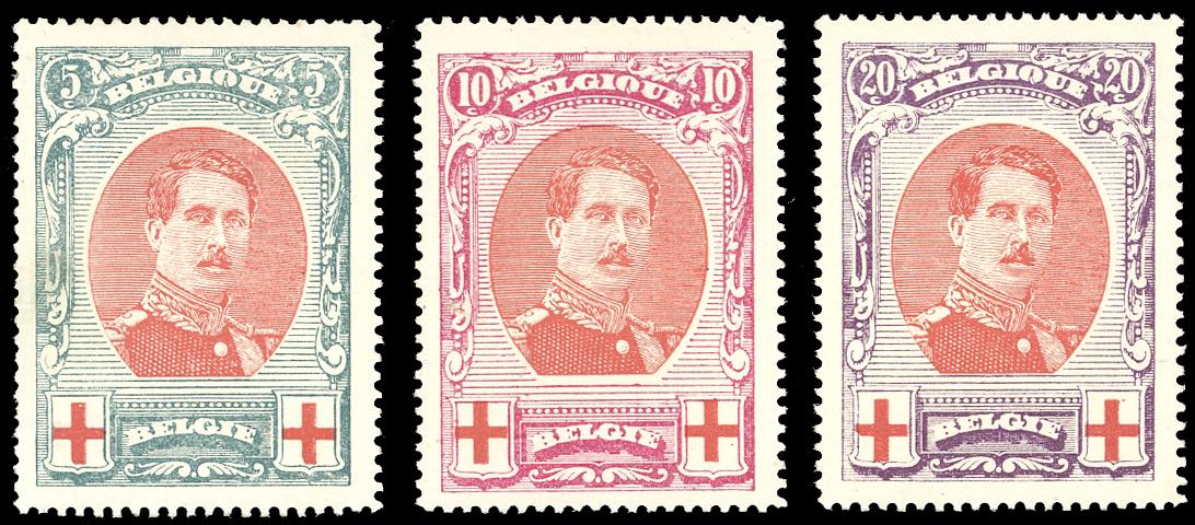 BELGIO 1915 - Pro Croce Rossa, serie completa (132/134), nuovi, gomma originale integra, perfetti.