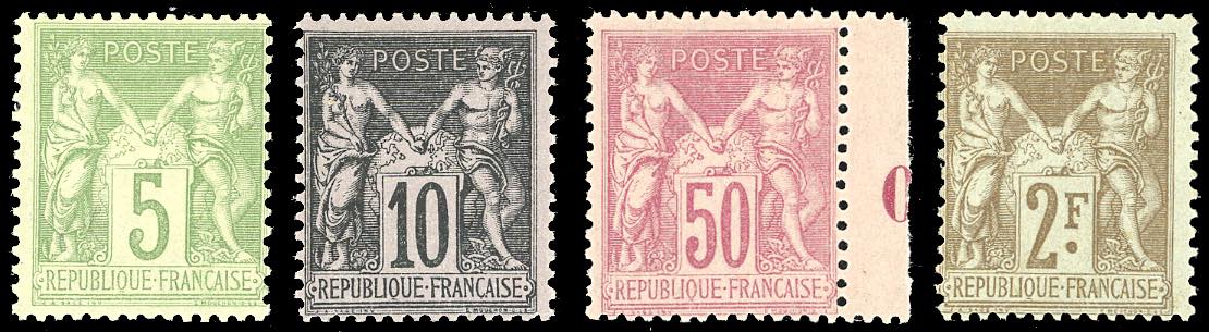 FRANCIA 1898/1900 - SAGE, I tipo, valori complementari, serie completa (102/105), nuovi, gomma originale integra ad eccezione del 2 fr. che è linguellato, perfetti. A.Diena per l'alto valore.