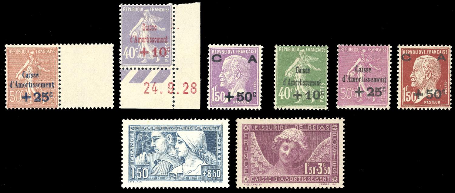 FRANCIA 1928/30 - Cassa d'Ammortamento, otto valori (249/251,252,253/255,256), nuovi, gomma originale integra, perfetti.
