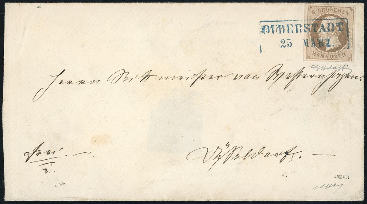 GERMANIA HANNOVER 1861 - 3 g. bruno (20), perfetto e ben marginato, su busta da Duderstadt 25/3. Bella. G. e A.Bolaffi.