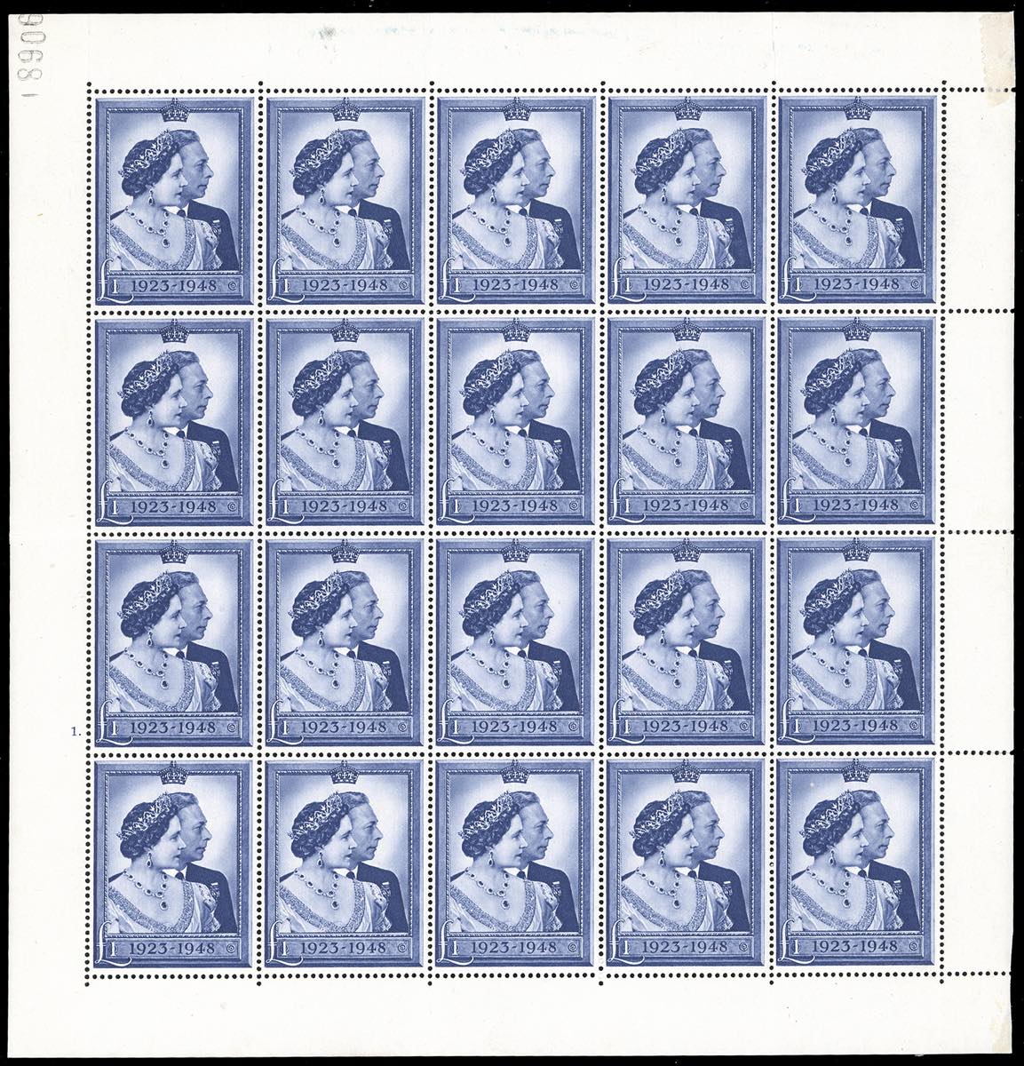 GRAN BRETAGNA 1948 - 1 £ Nozze d'argento (238), foglio completo di 20 esemplari, nuovo, gomma originale integra, perfetto.