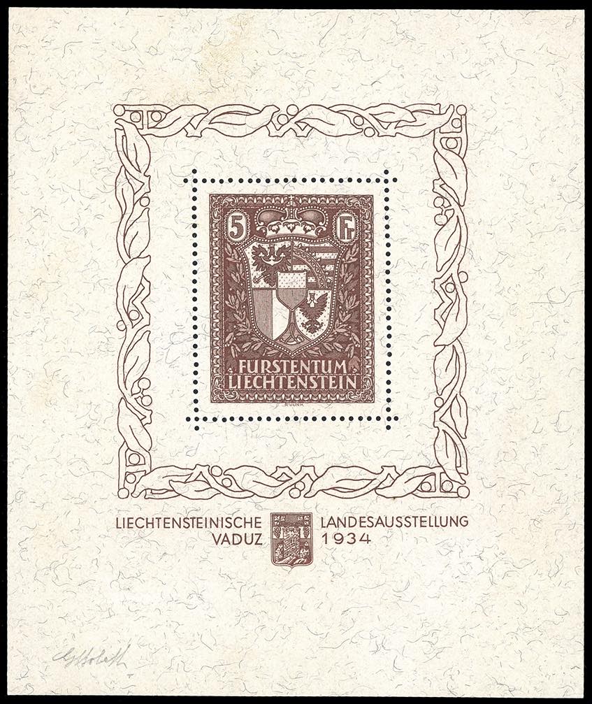 Lotto 2365 - LIECHTENSTEIN FOGLIETTI 1934 - 5 fr. Vaduz, foglietto ...
