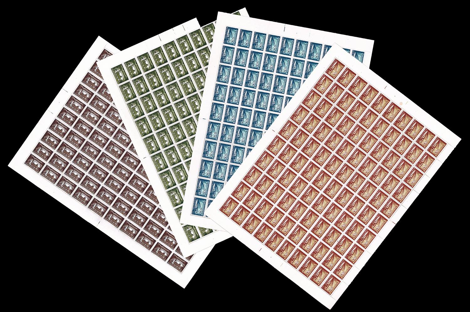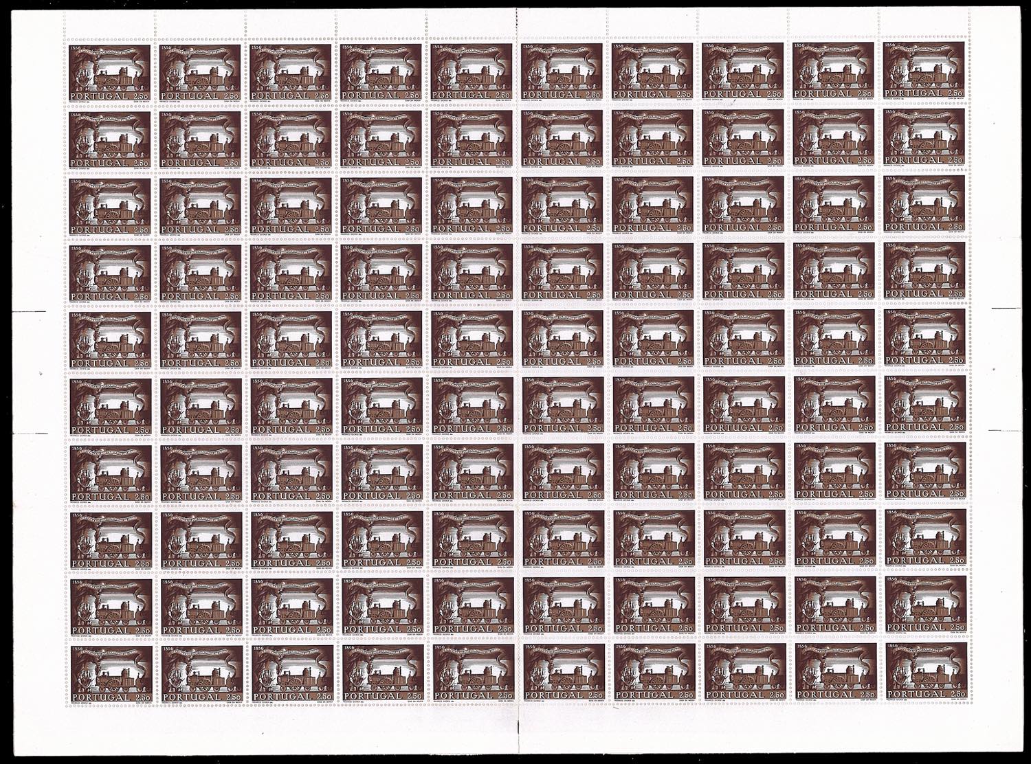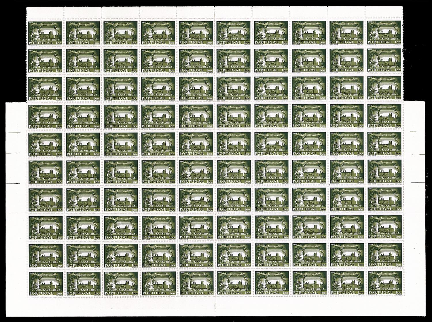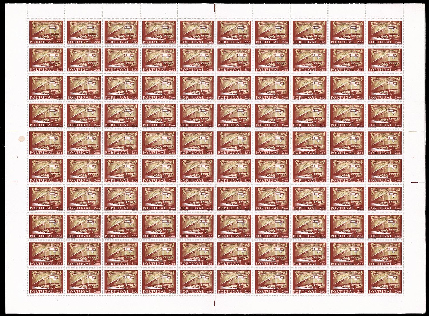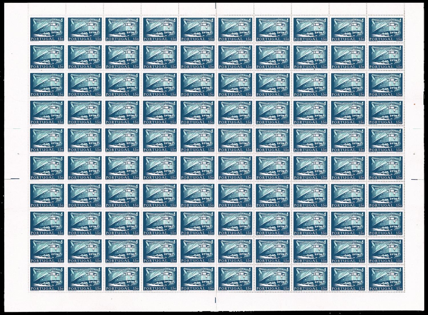 PORTOGALLO 1956 - Treni e Ferrovie, serie completa (831/834), fogli di 100 esemplari, nuovi, gomma originale integra, perfetti.