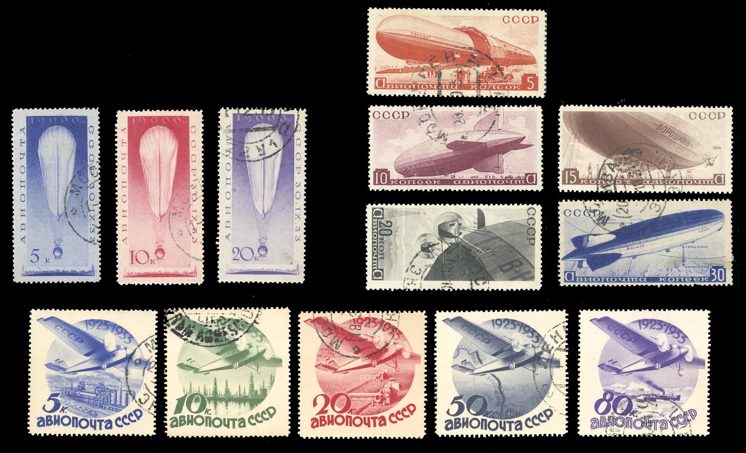 RUSSIA POSTA AEREA 1933/34 - Pallone nella stratosfera, Posta Aerea e Dirigibili, serie complete (A33/37,a38/40,A41/45), usati, perfetti.