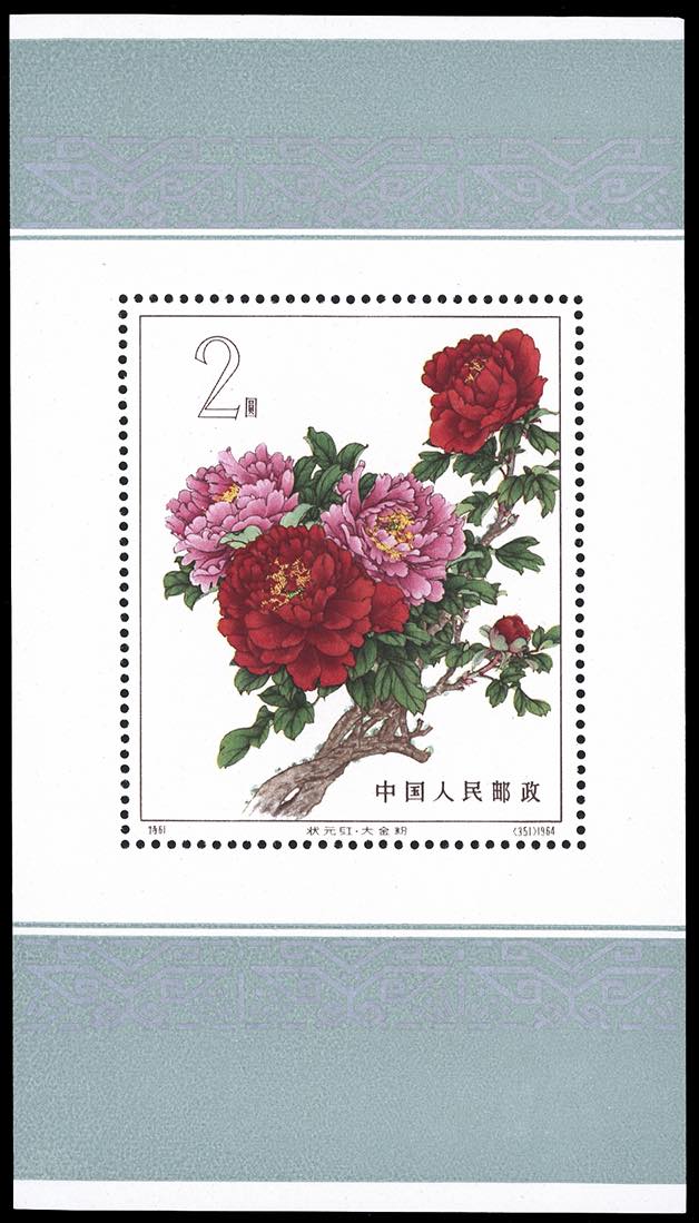 1964 - Peonies souvenir sheet (Mi.B9), appropriate sizes, no gum as issued, imperceptible crease in a corner, NH.