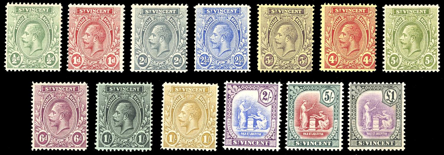 BRITISH COLONIES-SAINT VINCENT 1913 - Giorgio V, serie completa (Yv.85/97,SG 108/120), nuovi, gomma originale, MH, perfetti.