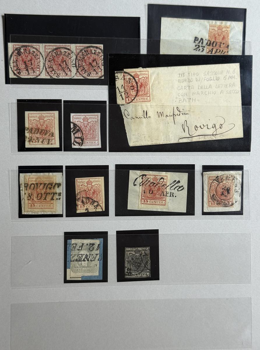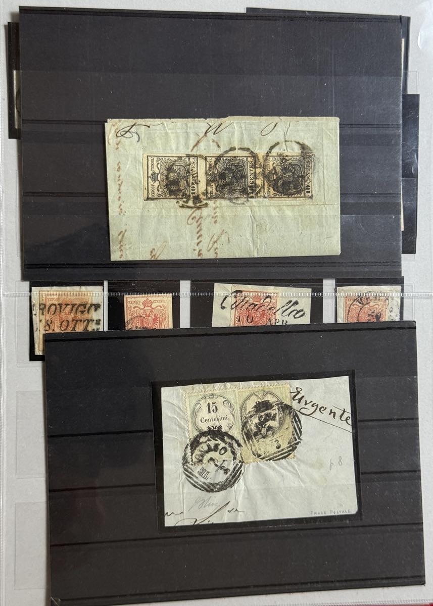 LOMBARDO VENETO 1850/1863 - Piccolo insieme di francobolli, frammenti e lettere del periodo con buone presenze. Unita piccola appendice di francobolli e annulli falsi segnalati.