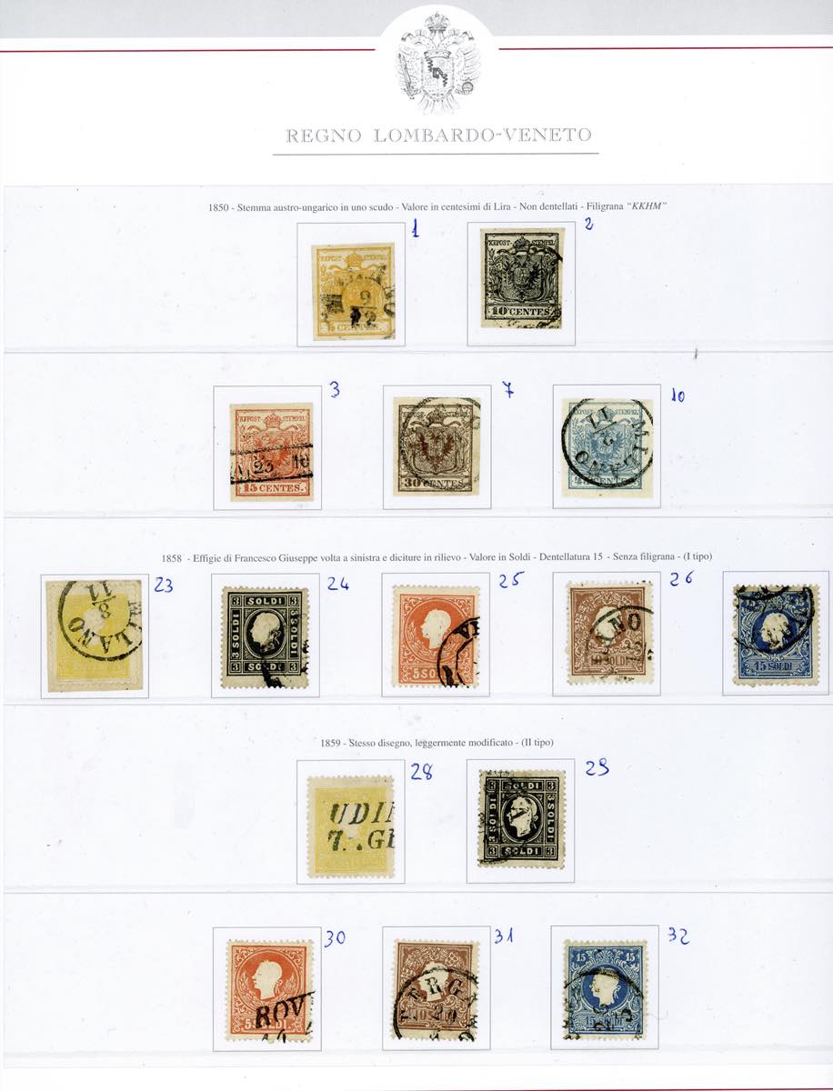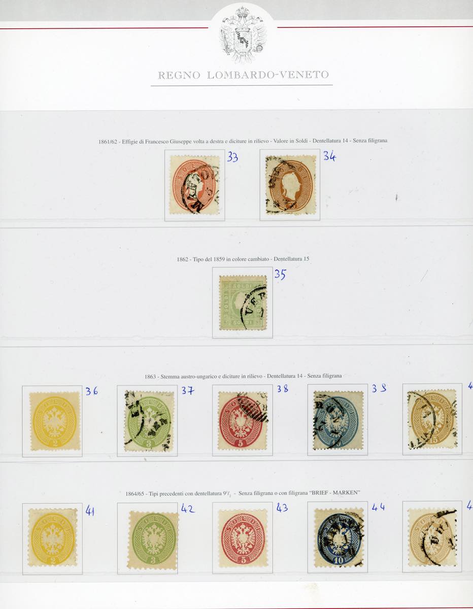 LOMBARDO VENETO 1850/1864 - Bella collezione di francobolli del periodo prevalentemente usati, in pagine d'album. Gli esemplari sono tutti perfetti, di ottima qualità e firmati Vaccari.